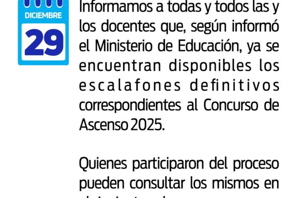 Atravesamos uno de los momentos más difíciles para la Escuela Pública y las y los trabajadores de la educación, pero no lo hicimos en soledad.Defendimos derechos, fortalecimos la unidad y mantuvimos viva nuestra organización colectiva.Nos quisieron señalar como enemigos, pero respondimos con más presencia, más solidaridad y más lucha.Vamos a seguir por este camino: el…