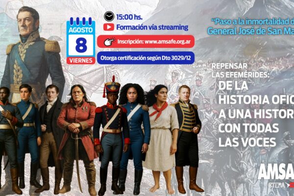 📚 *STREAMING DE FORMACIÓN DOCENTE | AMSAFE**“REPENSAR LAS EFEMÉRIDES: DE LA HISTORIA OFICIAL A UNA HISTORIA CON TODAS LAS VOCES”* 🗓️ *Viernes 8 de agosto a las 15:00hs*– 📍 Transmisión en vivo por el canal de YouTube de AMSAFE Desde AMSAFE invitamos a participar del streaming de formación docente en el que socializaremos propuestas pedagógicas…
