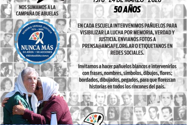 A 50 años del golpe que marcó una de las etapas más oscuras de nuestra historia, renovamos nuestro compromiso con la memoria, la verdad y la justicia, pilares indispensables de la democracia. Desde AMSAFE Las Colonias y el Instituto Superior N° 60 “27 de Septiembre” invitamos a docentes y a toda la comunidad a…