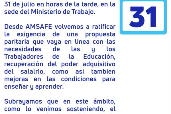 ✔️ *PARO Y CONCENTRACIÓN DE AMSAFE FRENTE A IAPOS EN SANTA FE: EXIGIMOS NUEVA CONVOCATORIA A PARITARIAS:*Tras la resolución de la Asamblea Provincial de AMSAFE que definió paro y acciones en toda la provincia, en la mañana de este miércoles 7 de agosto en la ciudad de Santa Fe compañeras y compañeros de los departamentos…