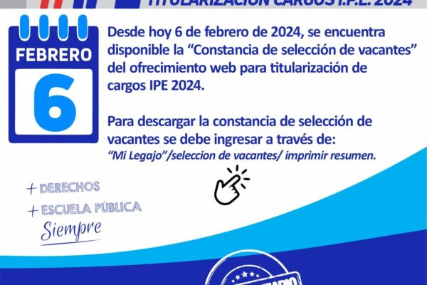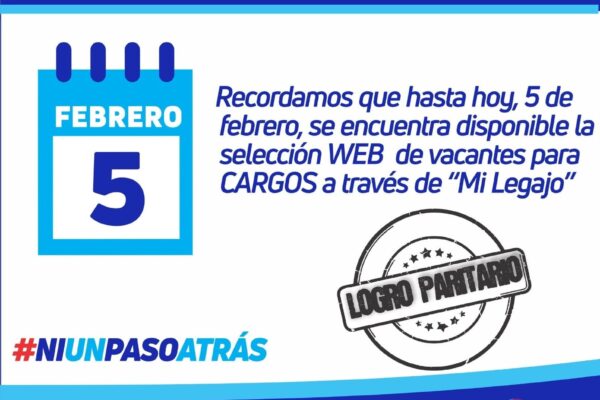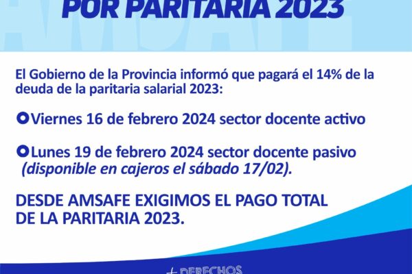 06/02 – REUNIÓN TÉCNICA PARITARIA El martes 6 de febrero se realizó una reunión técnica paritaria, participaron por AMSAFE Susana Ludmer, Patricia Hernández secretarias adjuntas , Paulo Juncos secretario gremial y María José Marano delegada seccional de AMSAFE La Capital y por el Ministerio de Educación la Secretaria de Educación Carolina Piedrabuena y la Secretaria…