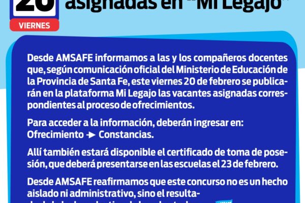 BASTA DE MENTIRAS: QUEREMOS UN SALARIO DIGNO Desde AMSAFE rechazamos las declaraciones del Gobierno provincial que intentan instalar que Santa Fe tendrá “uno de los mejores salarios docentes del país”. Esa afirmación es falsa y busca confundir a la sociedad y a la comunidad educativa. La verdad está escrita en el propio acta paritaria presentada…