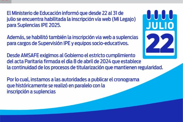 Queridos colegas hemos realizado una modificación de fecha para adherimos a la jornada Nacional de protesta que plantea Ctera por mayor presupuesto para Escuelas y Universidades Públicas. Por lo cual esperamos contar con la presencia de todos los afiliados, jubilados y estudiantes de la zona . Recuerden que es fundamental inscribirse según corresponda para poder…