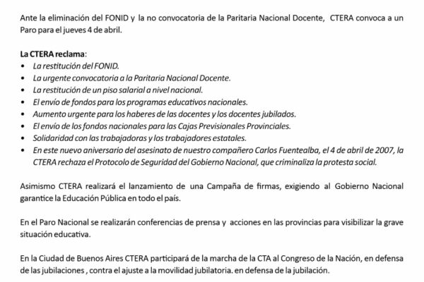 PARAMOS Y MARCHAMOS Desde Las Colonias se movilizaron muchísimos docentes y eso da cuenta de la valentía que tuvieron hoy, al poner por encima de todo el defender sus derechos y su dignidad. Decirles que nos toca una época muy difícil donde hay que hacerle frente a las diferentes embestidas de este gobierno sobre la…