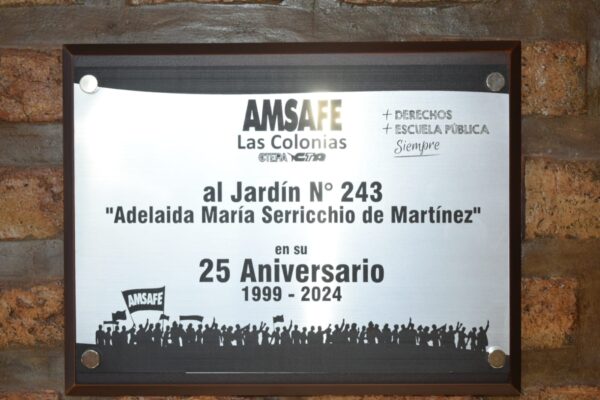 Acto en el Jardín N°243 de la localidad de Sarmiento AMSAFE LAS COLONIAS en el día de fecha, participó de un emotivo Acto en el Jardín N°243 de la localidad de Sarmiento por el Aniversario N° 25, bajo el lema «Acunando Infancias», agradecemos la invitación a la Directora Natalí Ayala, Docentes y a las Delegadas…