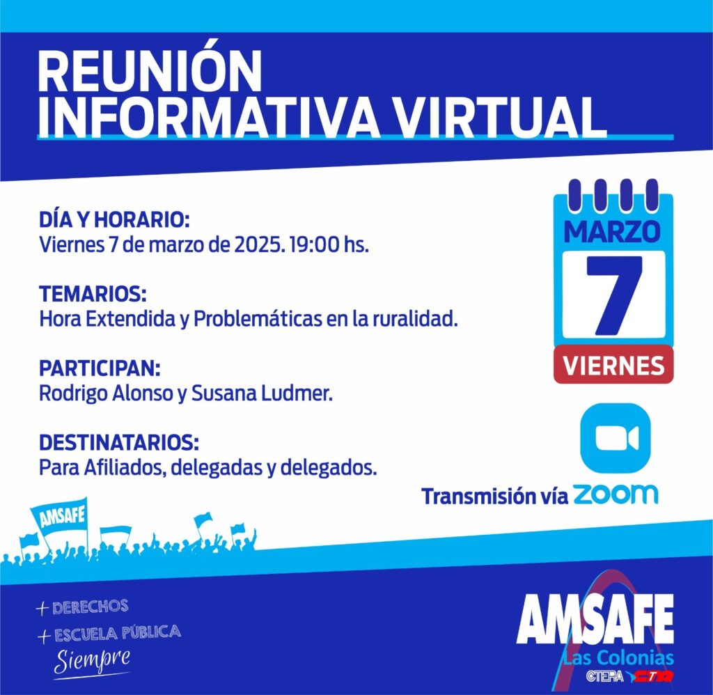 El Viernes 7 realizaremos una reunión virtual abordando dos temas: «Hora más», con Susana Ludmer y Problemáticas del Nivel Inicial con la Nuclearización de los Jardines y en la Ruralidad con la reorganización de cargos, reubicaciones, cierres,etc., con Rodrigo Alonso. Les solicitamos se inscriban en el formulario de Google. Podrán participar Delegados y Afiliados.
