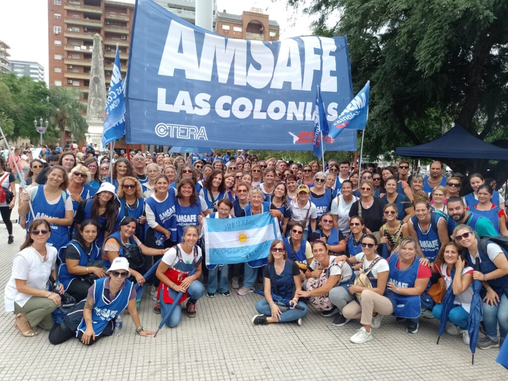 La interminable columna compuesta por más de 15.000 compañeras y compañeros de AMSAFE, SADOP, ADUL y SIPRUS, contó además con la adhesión y acompañamiento de organizaciones como CTA Santa Fe y el Movimiento Obrero Santafesino, entre otras.