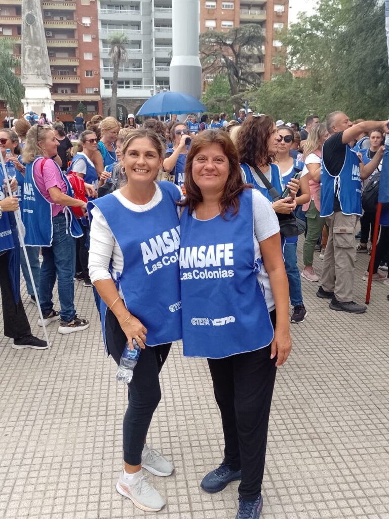 La concentración se realizó en la Plaza del Soldado en el centro santafesino y de allí se marchó hasta Casa de Gobierno, donde miles de trabajadoras y trabajadores reclamaron por salarios dignos, condiciones de trabajo dignas y prevención y protección para el trabajo docente.