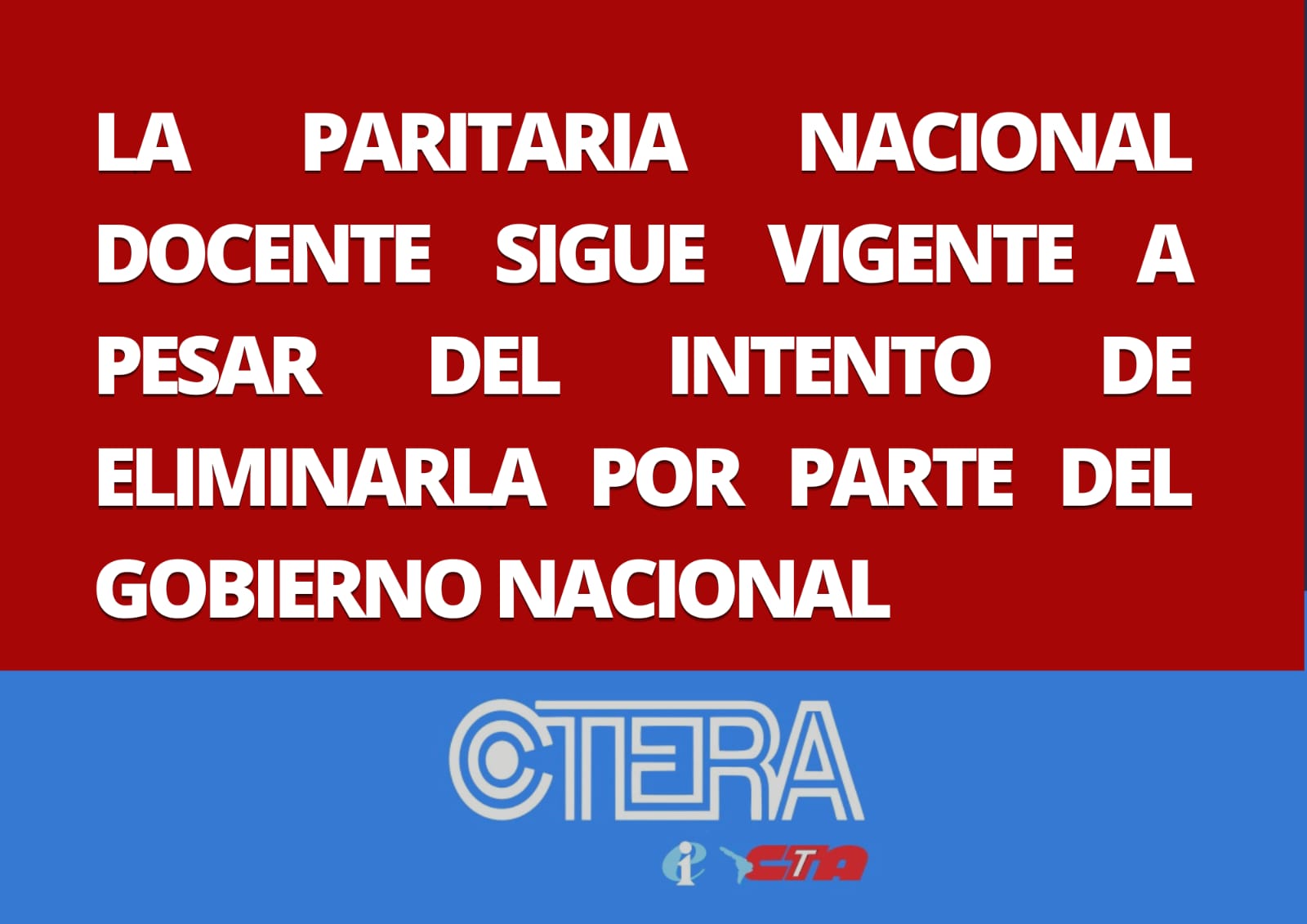 LA PARITARIA NACIONAL DOCENTE SIGUE VIGENTE A PESAR DEL INTENTO DE ELIMINARLA POR PARTE DEL GOBIERNO NACIONAL