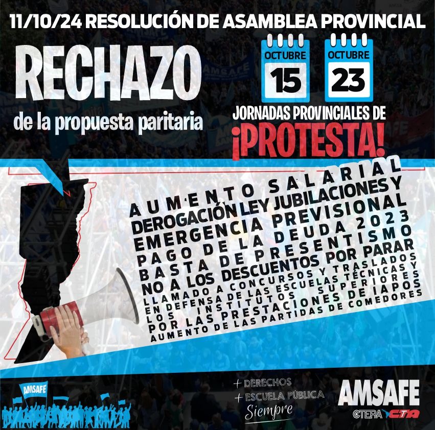 Desde Amsafe Las Colonias les solicitamos puedan enviar a la Delegación y/o Subdelegaciones los petitorios firmados exigiendo la inscripción a traslados y concursos, la presentación en la delegación Regional de Educación III se va a realizar por las delegaciones Castellanos y Las Colonias junto al secretario general de Amsafe, Rodrigo Alonso, el próximo miércoles 23 de octubre a las 10hs en el marco de la jornada de protesta resuelto en asamblea. Además se convocará a los medios a una conferencia de prensa en el mismo lugar para visibilizar un nuevo incumplimiento paritario por parte del gobierno provincial, *concentramos junto a delegados, afiliados y docentes que están esperando esta convocatoria. Nos encontramos 9,30hs en la esquina de Brasil y Avda. Italia*