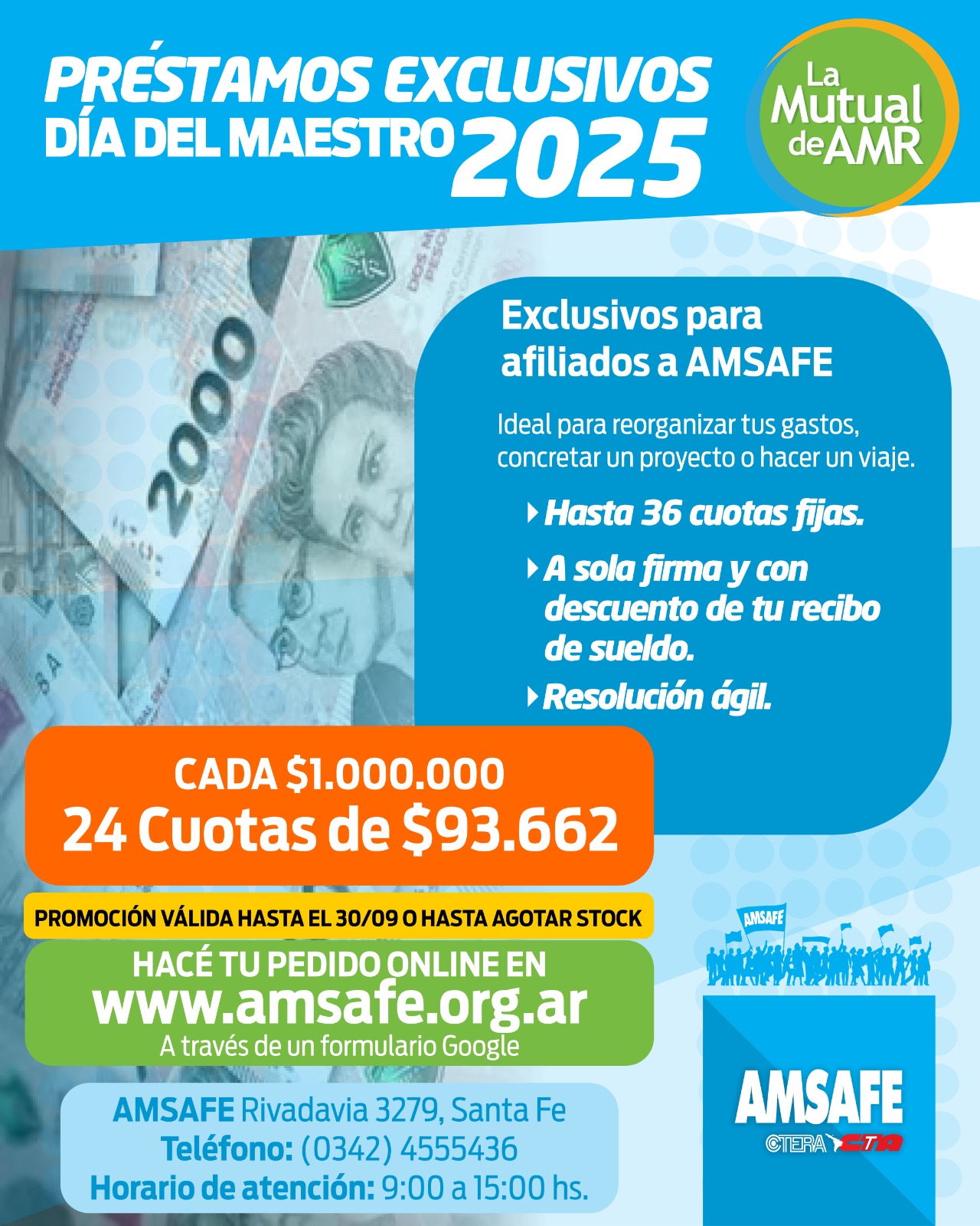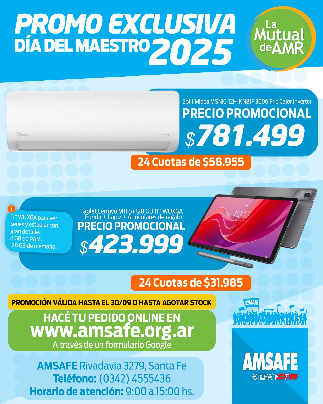 Desde AMSAFE ponemos a disposición una serie de promociones por el mes de las y los trabajadores de la educación.