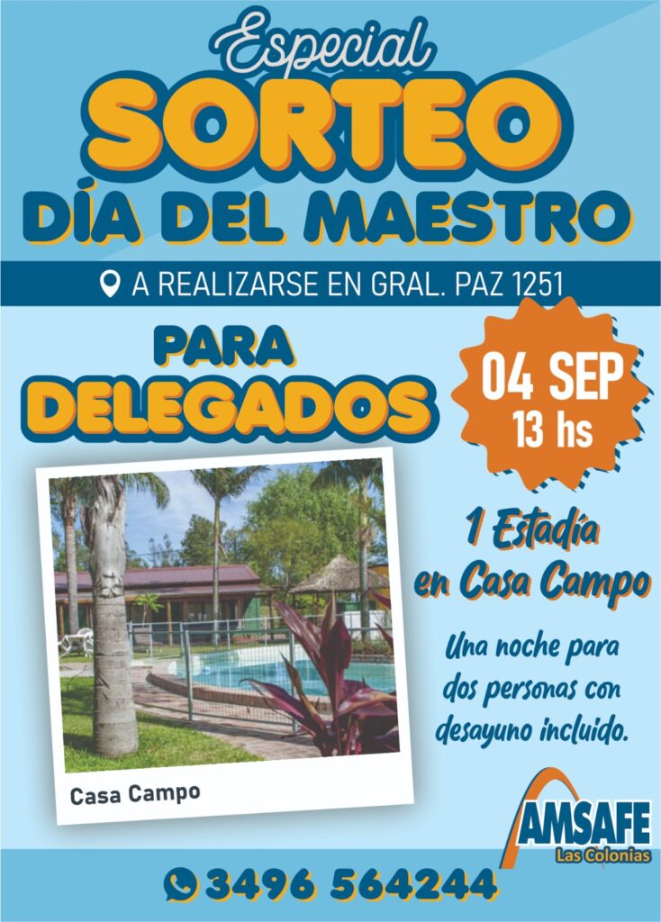 Como todos los años participan activos y pasivos por zona: norte, centro y sur de afiliados del departamento. Hay 1 premio por zona (3 en total de cada uno) para que se distribuya de manera equitativa. Además un sorteo especial para los delegados. Los esperamos el jueves 4 de septiembre a las 13 hs.