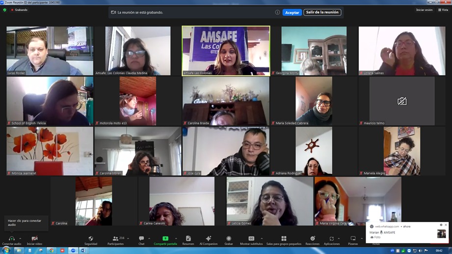 En el marco del Concurso de Ascenso Amsafe Las Colonias el día Sábado 27 Julio dió comienzo con el Talleres virtual «La función directiva en el contexto de la Normativa vigente» a cargo de Lucas Rodaz, Claudia Medina y Marcia Vallejos, con una amplísima convocatoria. Agradecemos a todos los participantes y especialmente al referente de Prensa de Amsafe Provincial quien generosamente accedió a nuestra invitación. En el mes de Agosto continuaremos con los Talleres rotativos planificados: «Taller de Escritura Académica» en San Carlos y el Taller del Módulo 3 «Equipos transformadores» en Esperanza. Se compartirán los flyers correspondientes y un cronograma general a modo de agenda. Amsafe Las Colonias cada vez más cerca.
