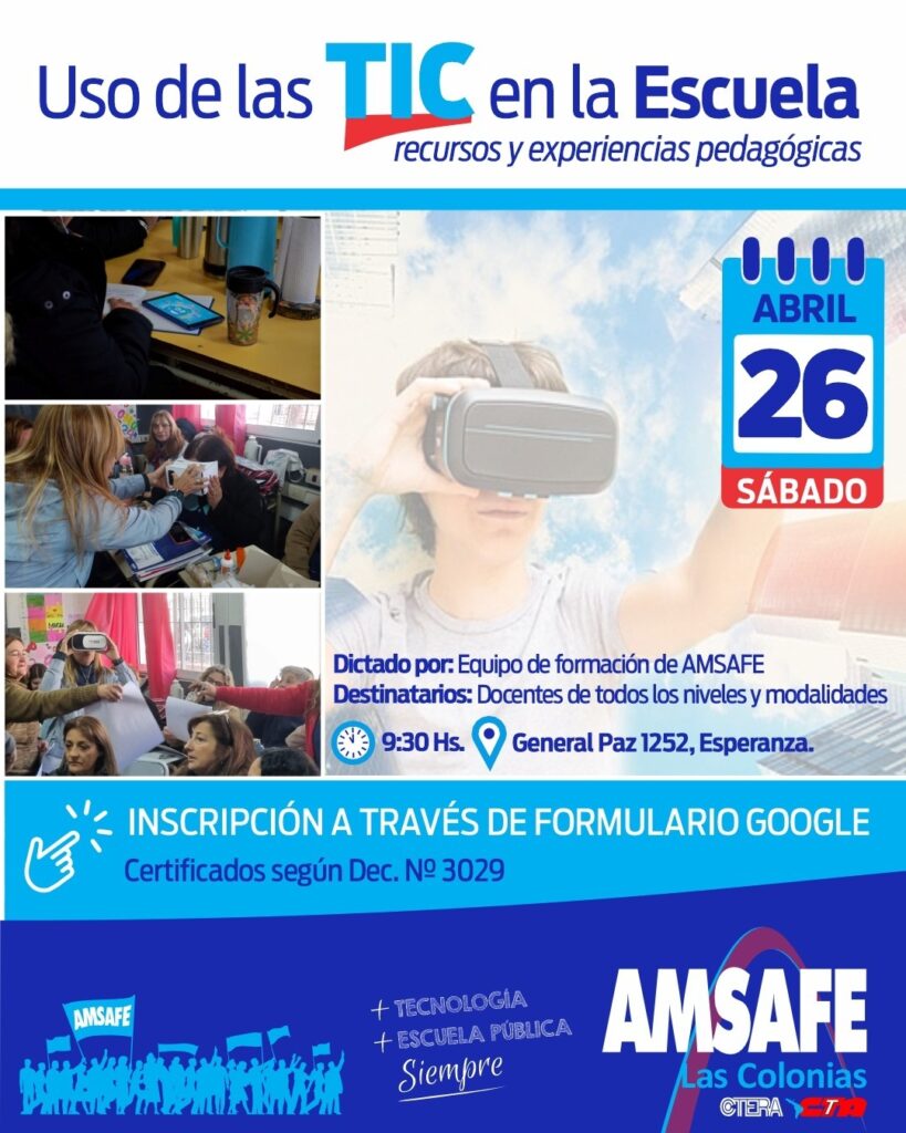 Les compartimos una nueva propuesta de Capacitación sobre el Uso de Tics en las escuelas. Es con cupos limitados de personas por lo cual deseamos se inscriban a través del formulario.